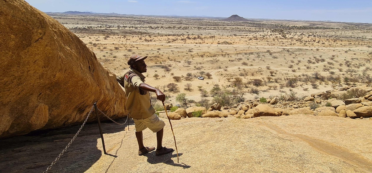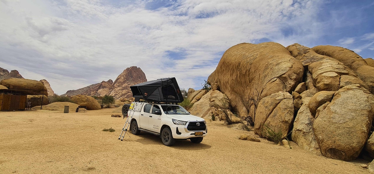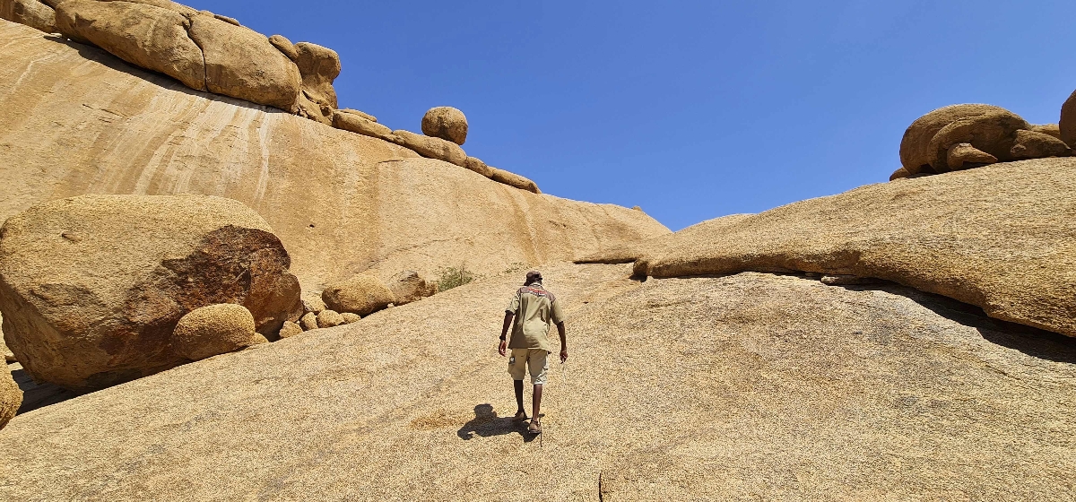 Am nächsten Tag erkunden wir mit Eddy, unseren Vor-Ort-Guide die Spitzkoppe. Fantastische Steinformationen mit Felsmalerein, entstanden vor etwa 2 bis 4 Tausend Jahren gibt es hier zu bewundern.