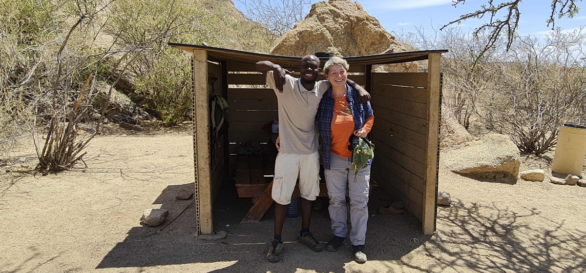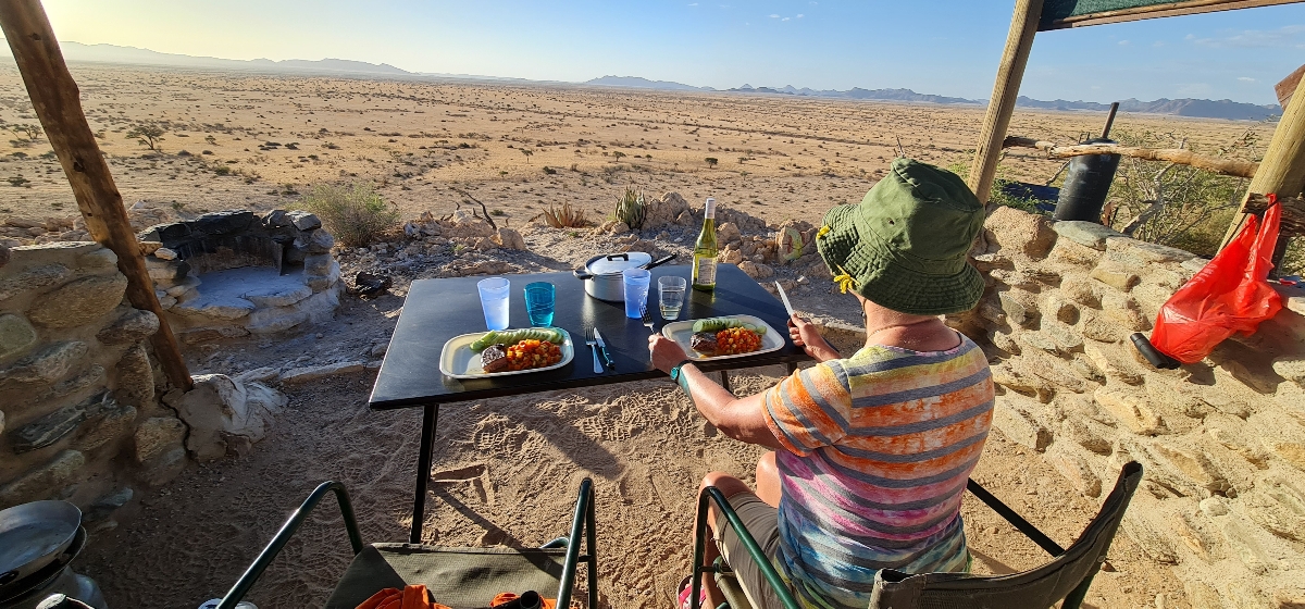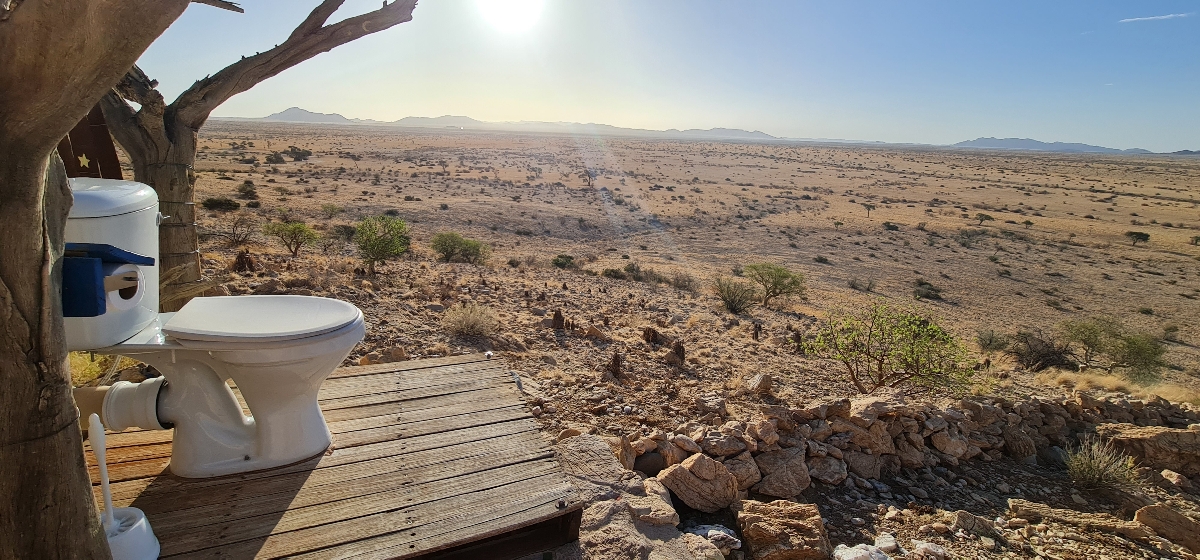 So ähnlich sind viele Plätze in Namibia. Die Einrichtungen sind oft unter freien Himmel und haben weite Abstände zur nächsten Campsite.