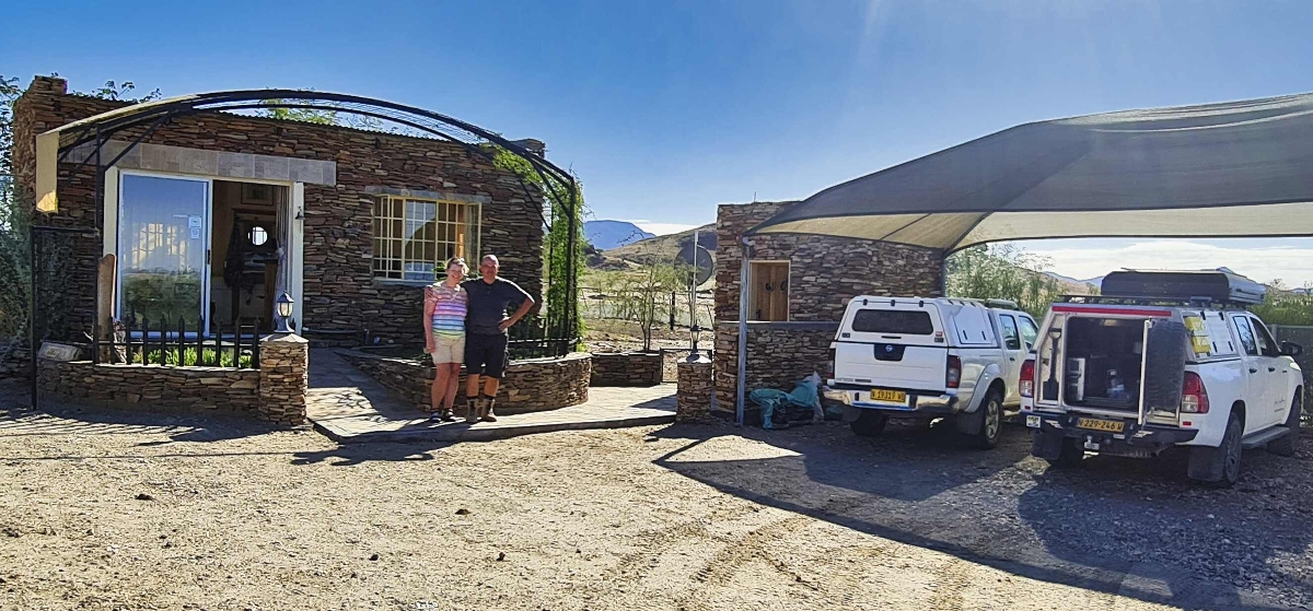 Hier erwartet uns Mareike mit ihren Eltern. Beim gemeinsamen Abendessen klingt unsere Namibiareise aus.