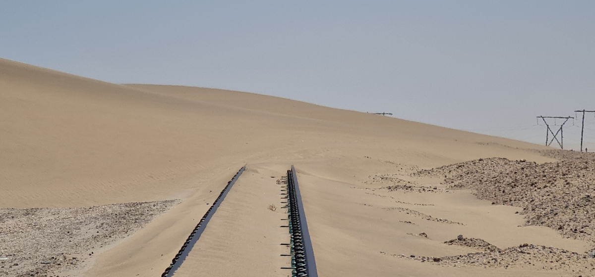 Eine Eisenbahnstrecke begleitet uns auf der linken Seite, jedoch ist Diese schon teilweise vom Sand zugeweht.